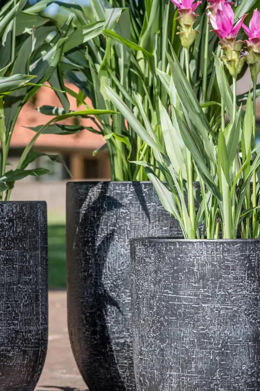 Kifejezetten nagyméretű kaspók is bőségesen megtalálhatóak minden New Garden üvegházban: Kerámia, könnyített műanyag és üvegszálas anyagokból.